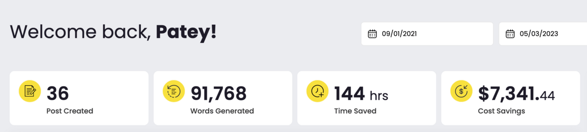 It’s great to see how much time and money I’ve saved using the platform - over $7K in not having to pay writers. I’m editing each piece, some very lightly, some quite heavily, and they are indexing well.