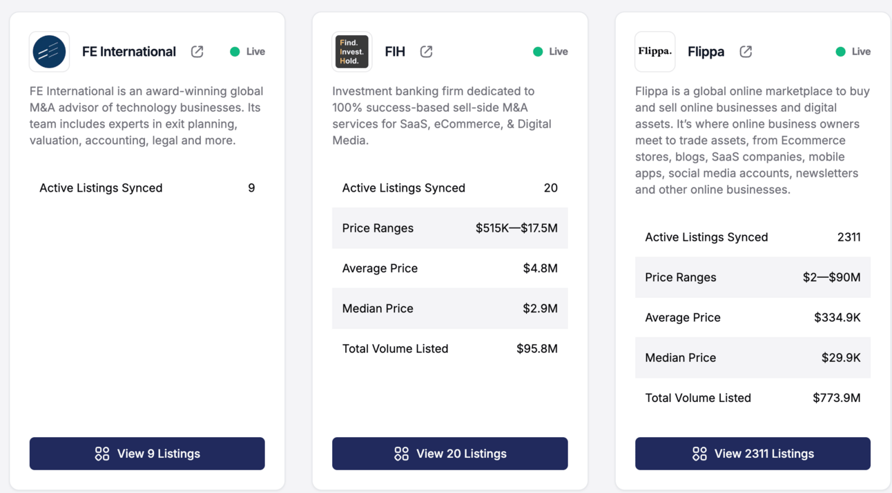 I spoke with him this week, and he stated that it’s not yet perfect as it doesn’t include Flippa’s 21 day first access for Premium customers. And also FE International’s volume is not showing up as they moved from listing prices to now only stating revenue and require you to request a CIM.