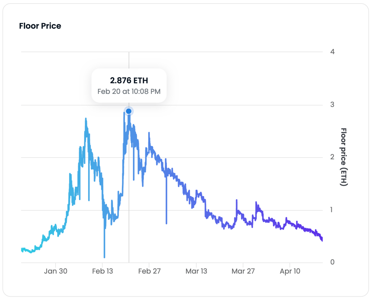This is crazy to see, seeing as the bluechip Checks (VV) was as high as 2.8ETH floor back in February: